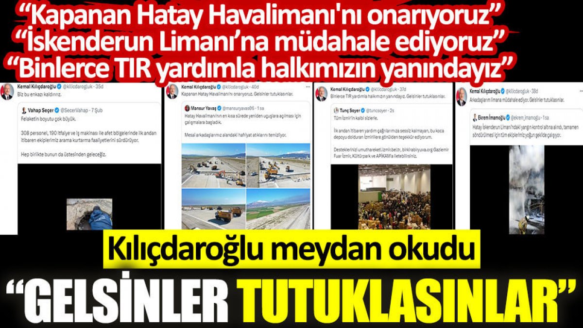 Kılıçdaroğlu, CHP’li belediye başkanlarının deprem bölgesinde yaptıklarını alıntı yaparak “Gelsinler tutuklasınlar" Dedi.