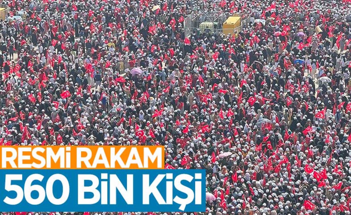 Cumhurbaşkanı Erdoğan, "Aldığım resmi rakamlarla şu anda 560 bin kişi karşımda bulunuyor. Siz ne güzel insanlarsınız. Sizler 2023’e giden bu yolda hazır olduğunuzu gösterdiniz." dedi.