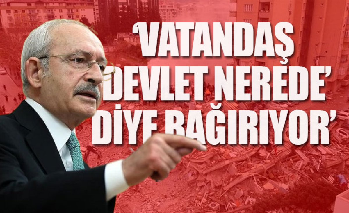CHP Genel Başkanı Kemal Kılıçdaroğlu, AKP iktidarının deprem sürecini yönetemediğini söyleyerek, "Vatandaş 'Devlet nerede?' diye bağırıyor" dedi.