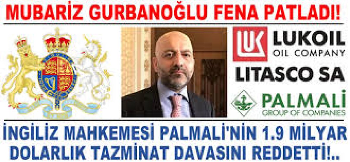 FETÖ/PDY Terör Örgütü'ne bilerek ve isteyerek yardım yapmak suçlamasıyla 5 yıl hapis cezasına çarptırılan Mübariz Gurbanoğlu'nun Yönetim Kurulu Başkanlığını üslendiği Palmali Holding'in, Lukoil'in iştiraki LİTASCO aleyhine İngiltere Yüksek Mahkemesi'nde açtığı 1 milyar 900 milyon dolarlık tazminat dava başvurusu reddedildi. Birleşik Krallık Yüksek Mahkeme Yargıcı David Foxton, Palmali Holding'in, Litasco'ya dava açma hakkı olduğunu ancak bu rakamın 151 milyon dolardan fazla olamayacağına karar verdi.