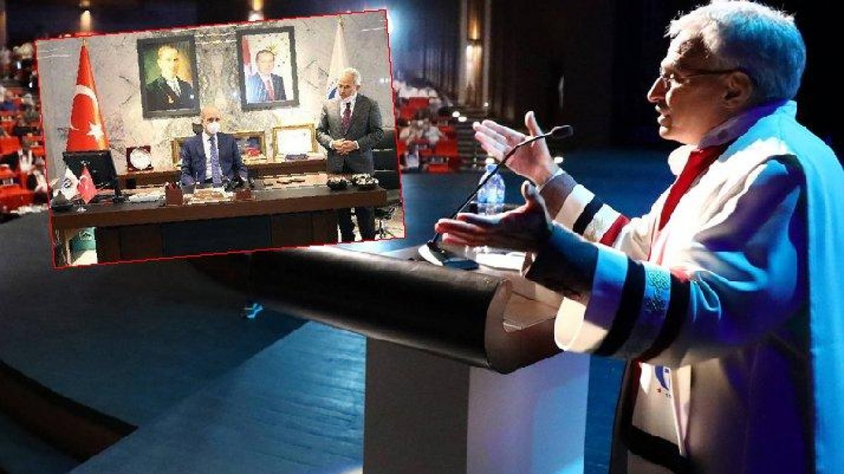 Rektör'ün İlahiyat Fakültesi öğrencilerine yönelik bu konuşmasına, mezun olan öğrenci ve aileleri ile salonda bulunan akademisyenler tepki gösterdi.